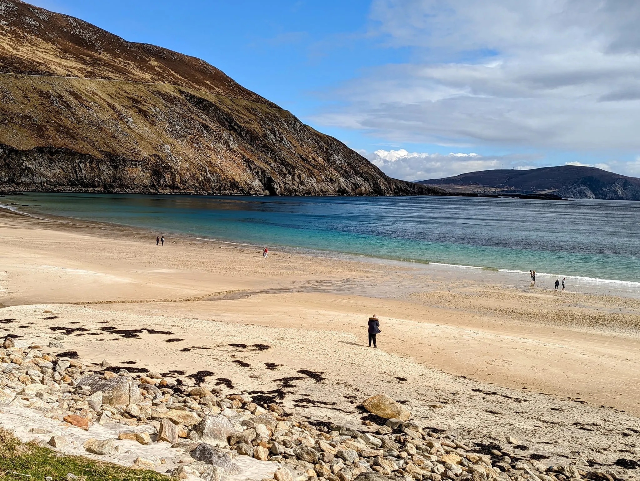 A former coastguard watchhouse is at the top of this spar, about 200m. For hillwalkers, this spot marks the start of a breathtaking 1.5km walk along the top of the cliffs of Benmore. The walk ends at Achill Head, the most westerly point of Achill Island. It takes around 30 minutes to get up and about 25 to get down. If there’s been any kind of rain, the ‘trail’ up to the top is extremely slippy, so good footwear is needed.